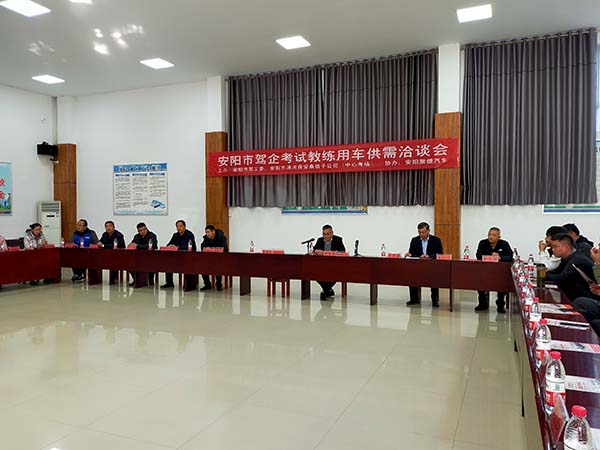 11月18日上午,安陽(yáng)市道路運(yùn)輸協(xié)會(huì)機(jī)動(dòng)車駕駛員培訓(xùn)工作委員會(huì)(以下簡(jiǎn)稱道協(xié))秘書(shū)長(zhǎng)陳曉東、駕工委秘書(shū)長(zhǎng)柳偉太,鼎信公司班子及來(lái)自全市近40家駕校負(fù)責(zé)人在中心考場(chǎng)十二分培訓(xùn)教室相邀一聚,與奇瑞汽車代理商就安陽(yáng)市駕企考試教練用車供需進(jìn)行洽談并簽訂合作意向書(shū)。會(huì)議由洹河保安公司黨委委員楊克忠主持。