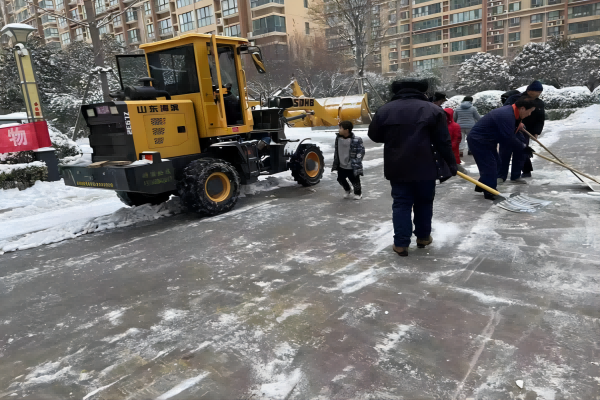 除雪行動中,鼎誠物業(yè)合理調(diào)配人員、機械,采取人機相結(jié)合的方式,分工明確,分片負責(zé),劃區(qū)作戰(zhàn),先清后鏟,隨降隨清,隨清隨運。大家齊心協(xié)力,團結(jié)協(xié)作,對各項目小區(qū)主干道、停車場道路出口、臺階等部位進行清掃。