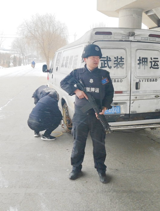 橫水線路、任村線路押運車輛均在行駛中,立即根據(jù)路況加裝了車輛防滑鏈。東姚線路押運車輛在行駛至洪河網(wǎng)點時,由于雪越下越大,導致進入洪河村時積雪深度較厚,車長李玉浩立即下車進行勘察,發(fā)現(xiàn)鄉(xiāng)村小道不但積雪較厚,還多有坑洼狹窄的路段,雖然安裝有防滑鏈,但對于車輛行駛有很大的安全隱患。經(jīng)過車長與司機、車組人員商議,并報副隊長管宇飛批準,決定采取徒步進行接送洪河網(wǎng)點款箱,徒步接送路程大約有3公里左右。為確保安全,司機將車輛停靠村口最近位置,并留守一名押運員值守,車長隨調(diào)款員前去接送款箱,經(jīng)過一段時間的徒步行進,將款箱安全裝車,并于晚上8時左右,東姚線路車輛安全返回駐地,安全的完成了押運工作任務。