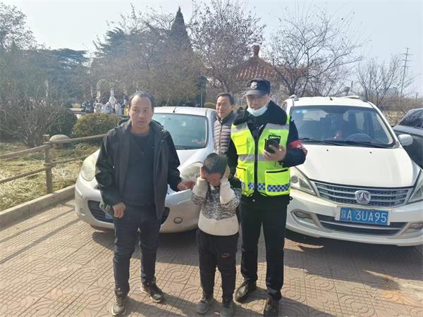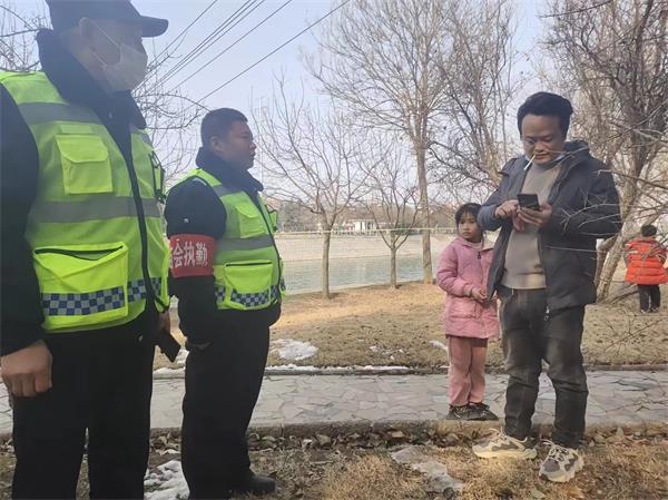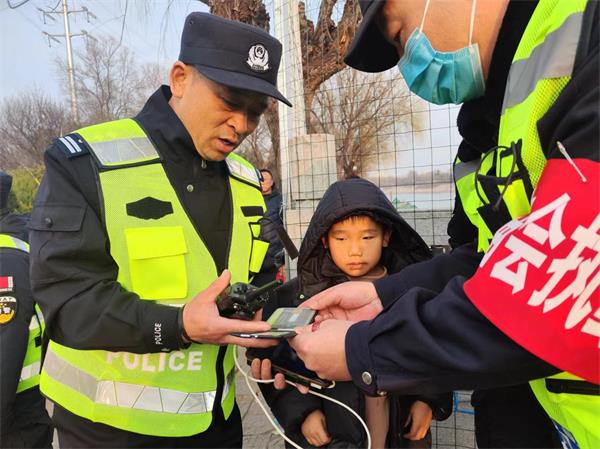 廟會(huì)執(zhí)勤期間,下午3時(shí)許,五中隊(duì)駐煙廠保安班長孫海杰和王偉發(fā)現(xiàn)一小男孩走丟找不到父母,立即詢問孩子父母電話,和其父母取得聯(lián)系以后,安全把孩子交到父親手里。