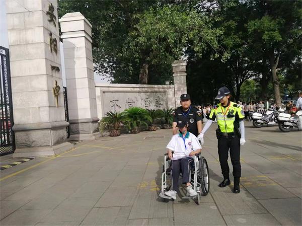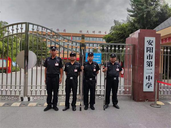 考試期間,全體執(zhí)勤隊員牢固樹立全心全意為考生服務的思想,時時處處把安全意識、安全責任放在首位,為考生營造安全、和諧的考試環(huán)境。早上6點半,護考保安隊員準時到崗在位,嚴格按照公司“定人、定崗、定時、定責”要求,警容嚴整,嚴陣以待,配合校方在學校門口設置警戒區(qū)域,避免無關人員靠近,做好校門口交通保障、門衛(wèi)守護、入場指導、警戒維護等……他們各司其職、認真負責。執(zhí)勤中,涌現了許多好人好事,如:駐四中考點、一中考點護送輪椅上行走不便學生的保安隊員陳文斌、王鳳銀,駐三十二中考點撿到汽車鑰匙和家中鑰匙的隊員牛新玉等。盡管汗水打濕了衣服,但他們依然頂著酷暑堅守在各自的崗位上,為莘莘學子保駕護航,良好的精神風貌贏得了考生和家長的一致好評。