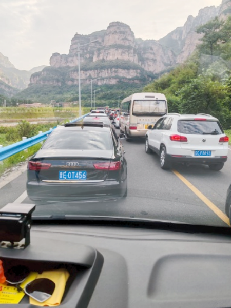 由于暑期前往林州旅游的游客非常多,守押七大隊(duì)聯(lián)社中隊(duì)任村線路的石板巖網(wǎng)點(diǎn)恰好位于景區(qū)附近,所以常常遭遇嚴(yán)重的車輛擁堵,影響押運(yùn)工作。但該車組人員不畏艱難,以高度的使命感和安全意識(shí),克服重重困難,安全的完成了押運(yùn)任務(wù)。