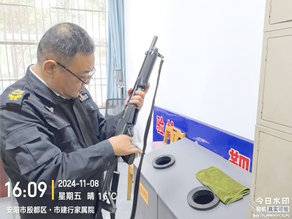 大隊(duì)長(zhǎng)段俊杰重點(diǎn)檢查了辦公室、更衣室的用電安全和消防器材,并向司機(jī)詳細(xì)了解押運(yùn)車輛運(yùn)行情況;隨后對(duì)大隊(duì)槍支彈藥進(jìn)行了安全檢查,確保槍彈狀態(tài)良好。