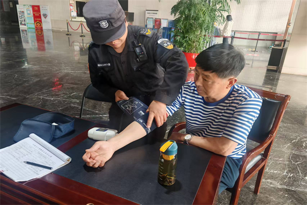 4月9日下午,一名游客在中國(guó)文字博物館游覽期間,突發(fā)身體不適,前來(lái)安檢處尋求幫助,特保大隊(duì)派駐文字博物館安檢班長(zhǎng)趙書(shū)娜迅速對(duì)該游客實(shí)施救助,攙扶游客到員工通道坐下休息,并到醫(yī)務(wù)室取來(lái)血壓計(jì)為游客測(cè)量血壓,利用自己學(xué)過(guò)的急救知識(shí)結(jié)合測(cè)量結(jié)果,發(fā)現(xiàn)該游客是血壓過(guò)高導(dǎo)致不適。第一時(shí)間讓游客服用降壓藥,并安撫其情緒。