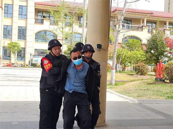 按照應急預案,當班的3名保安迅速分工。一人持防暴盾牌正面封堵“歹徒”前進路線,兩人持鋼叉從側(cè)后方包抄。面對“歹徒”的揮砍威脅,保安團隊采用“盾牌交叉防御+鋼叉鎖喉控制”戰(zhàn)術,逐步壓縮其活動空間。在與“歹徒”周旋的2分鐘內(nèi),最終協(xié)同將“歹徒”制服。此時園區(qū)已完成師生避險疏散,警方支援力量也同步抵達現(xiàn)場。