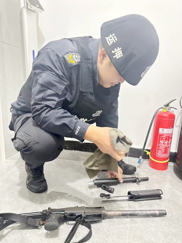 保養(yǎng)過程中,押運(yùn)員嚴(yán)格對標(biāo)《槍支管理規(guī)定》要求,全程遵循“分解徹底、清潔到位、潤滑均勻、調(diào)試精準(zhǔn)”原則,逐一拆解槍支,細(xì)致清除部件縫隙內(nèi)的灰塵與濕氣,涂抹專用潤滑劑,同時(shí)還重點(diǎn)檢查了擊發(fā)裝置靈敏度、槍管內(nèi)壁光潔度、彈匣供彈流暢性等核心指標(biāo)。