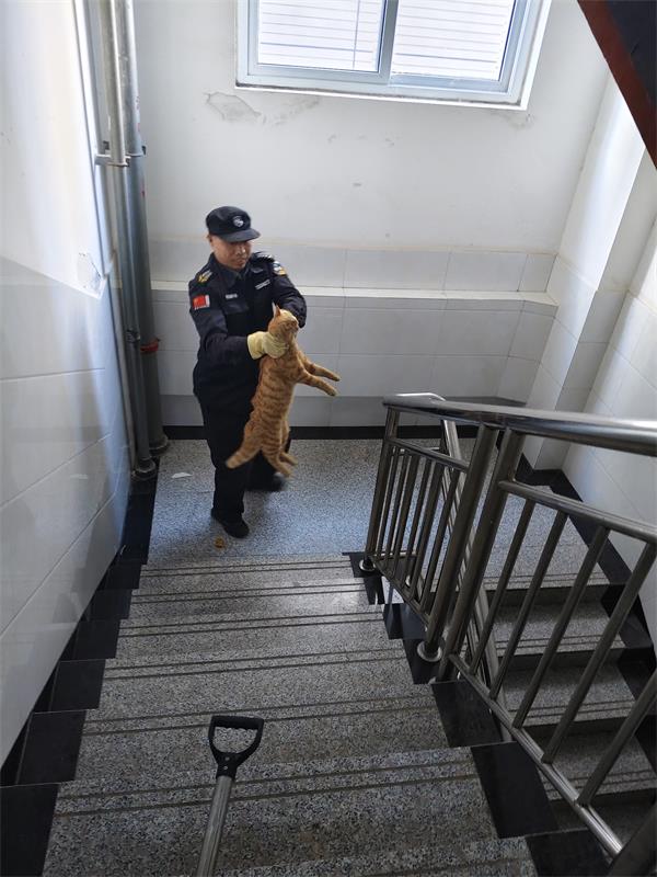 當日,趙付山同志按規(guī)范開展校園巡邏時,發(fā)現(xiàn)一只流浪貓突然闖入學生宿舍區(qū)域,可能威脅學生人身安全。他迅速反應(yīng)、沉著處置,立即啟動應(yīng)急流程,一邊安撫現(xiàn)場學生情緒,一邊采取安全穩(wěn)妥方式對流浪貓進行驅(qū)離,最終想盡一切辦法才捉住了身形矯健的流浪貓并交給了有關(guān)部門處置。之后趙付山又對宿舍區(qū)域進行了全面安全檢查,確保無后續(xù)風險。其專業(yè)高效的處置能力和心系師生的責任意識,得到學校及師生的充分肯定,學校專門發(fā)布通報對其予以表揚。