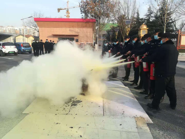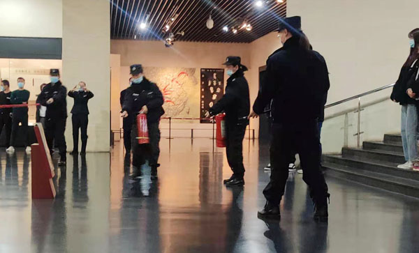 12月18日上午8點(diǎn)30分,特保大隊(duì)派駐中國文字博物館中隊(duì)按照客戶年末冬季消防防控要求,結(jié)合公司《冬春季火災(zāi)防控實(shí)施方案》活動(dòng)內(nèi)容,進(jìn)行了消防演練??蛻舭脖2恐魅螌O琳杰和全館工作人員觀摩??蛻舫浞挚隙岁?duì)員的消防技能。特保大隊(duì)隊(duì)長李樞林指導(dǎo)此次演練。