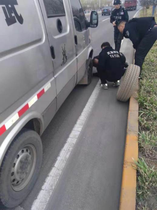 3月10日下午,守押七大隊(duì)聯(lián)社中隊(duì)橫水線路押運(yùn)車(chē)輛豫EEA030行駛途中輪胎受損,導(dǎo)致車(chē)輛行駛異常。車(chē)長(zhǎng)苗榮斌感覺(jué)異樣,立即叫停,安排司機(jī)原艷兵下車(chē)檢查,發(fā)現(xiàn)車(chē)輛右前輪胎發(fā)生漏氣,馬上就要癟掉。得知車(chē)況后,苗榮斌立即大隊(duì)領(lǐng)導(dǎo)上報(bào)情況。大隊(duì)指示,在安全的情況下更換車(chē)輛備胎,并同時(shí)上報(bào)了公司監(jiān)控中心。