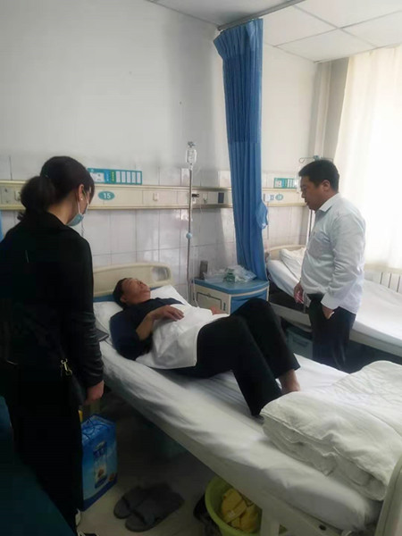 5月18日上午,人防二大隊(duì)副大隊(duì)長曹修穩(wěn)代表大隊(duì)領(lǐng)導(dǎo)和中隊(duì)長華麗池一同前往地區(qū)醫(yī)院住院部三樓,看望慰問生病住院的保安員韓國民。曹隊(duì)長轉(zhuǎn)達(dá)了公司工會及相關(guān)領(lǐng)導(dǎo)的關(guān)懷和慰問,向該同志送去了組織的溫暖,并叮囑他養(yǎng)好身體,早日康復(fù)出院,回到工作崗位。