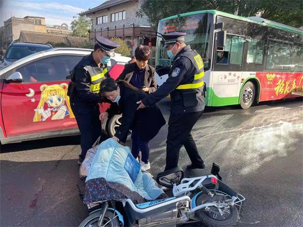 10月11日上午9時(shí)許,人防一大隊(duì)文峰巡防中隊(duì)班長(zhǎng)楊科,隊(duì)員鄭天龍,王軍清等9名隊(duì)員,例行巡邏到文峰北路與三道街交叉口時(shí),路上突發(fā)一起交通事故,事故導(dǎo)致一名婦女摔倒在地,見(jiàn)此情形,隊(duì)員及時(shí)停車上前查看情況。