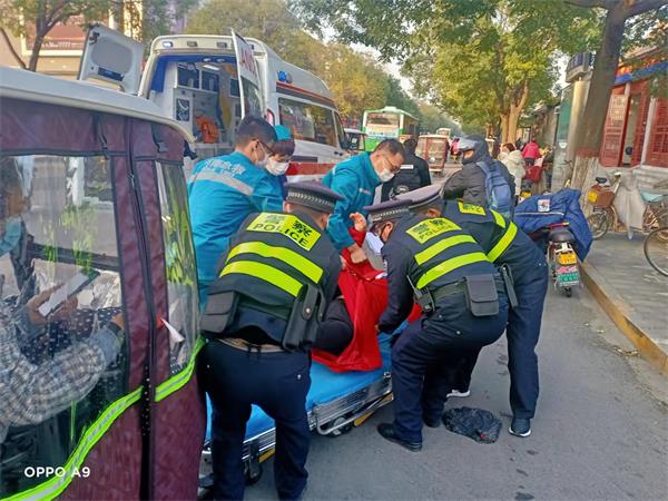 隨后,巡防隊(duì)員一邊對(duì)周圍圍觀群眾進(jìn)行疏散,指揮交通,疏散車輛,并維護(hù)現(xiàn)場(chǎng)秩序,避免道路長(zhǎng)時(shí)間堵塞。一邊積極與120和110聯(lián)系。等120救護(hù)車到時(shí),協(xié)同醫(yī)護(hù)人員將傷者抬到了車上,使受傷老人得到及時(shí)救治,巡防隊(duì)員的舉動(dòng)受到了周圍老百姓的一致稱贊。