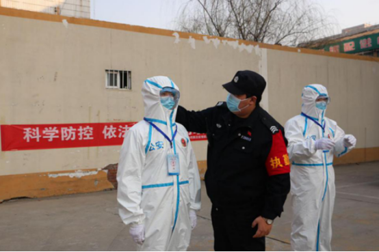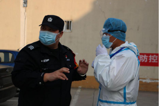 1月23日(臘月二十九),臨近春節(jié),輔警中隊忙著執(zhí)勤,保障春節(jié)期間的社會平安。李鑫和隊員白天站崗,晚上帶隊巡邏,已經處于連軸轉的狀態(tài)。就在此時,更艱巨的任務已經在等待他們。1月24日(除夕)夜,華強城小區(qū)發(fā)現疫情,分局指令輔警中隊迅速趕往華強城小區(qū),執(zhí)行警戒任務。李鑫二話不說,帶領當值特保(輔警)隊員,趕到執(zhí)勤地點。個人防護用品不夠,李鑫讓隊員先用上,自己開車到家,把愛人為自己家庭準備的口罩和酒精帶到執(zhí)勤點,緩解了防護用品缺乏的情況。待到分局防護物品送到前,現場所有執(zhí)勤隊員已經按照要求做好防護,執(zhí)行勤務。分局楊局長夸獎輔警中隊“到位迅速,防護嚴密,心中有警”。