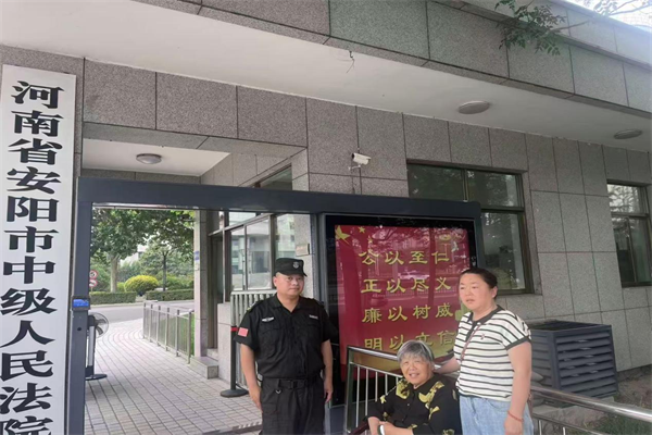 5月20日上午10:30分左右,安陽市中級人民法院由于近期院內(nèi)電梯裝修,一名腿腳不便老人來訪,特保隊員付英琪發(fā)現(xiàn)后,主動上前攙扶老人,得到了老人的衷心感謝。