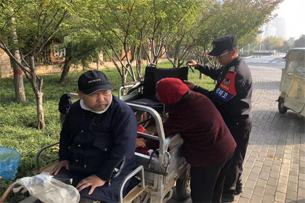 11月1日上午,特保隊(duì)員李志強(qiáng)在中院南門(mén)外發(fā)現(xiàn)有兩名信訪群眾身體不便前來(lái)中院上訪,他們年紀(jì)較大且腿腳不便,李志強(qiáng)耐心溝通了解后,主動(dòng)上前攙扶并幫助他們把輪椅裝上三輪車,協(xié)助老人推動(dòng)三輪車前去信訪大廳。