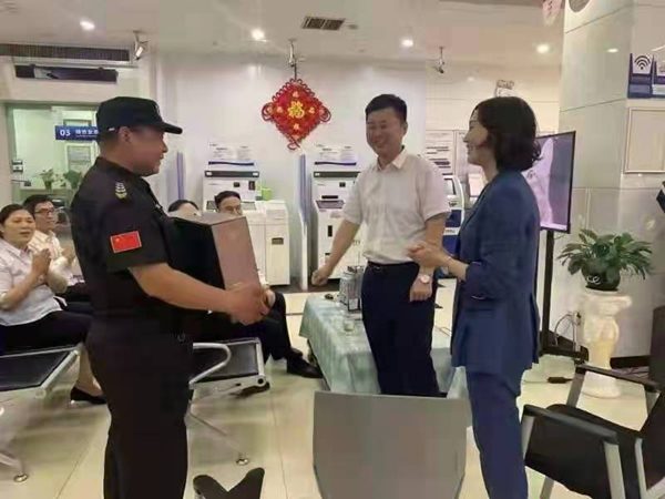 5月18日下午,中原銀行安陽分行零售部總經(jīng)理王國賓和副總經(jīng)理暴潔,專程到老槐樹支行慰問并表揚人防四大隊派駐這里的保安隊員許文革,對許文革盡職盡責的工作態(tài)度給予高度贊揚。