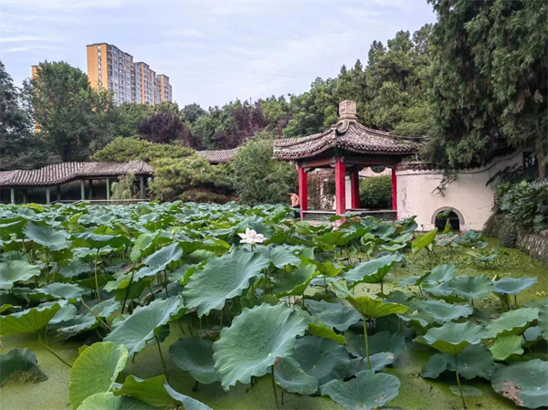 且近中秋風(fēng)景好,踱步公園,光顧人稀少,西望霽輝空瀚灝,湖光瀲滟群鵝繞。